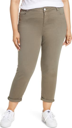 Relaxed boyfriend jeans in comfortable stretch denim feature rollable hems to flaunt your killer kicks and a distressed wash that enhances the laid-back appeal.