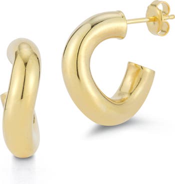 These sterling silver hoops plated in 14-karat gold have a unique, wavy shape.