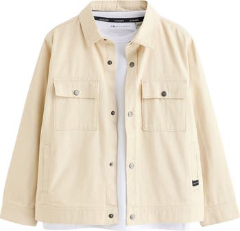An oversized shirt-jacket cut from soft cotton twill pairs with an all-cotton T-shirt to give your kid easy options for layering or pairing with other favorite clothes. The shirt-jacket sports multiple pockets for warming hands or holding a day's small essentials.