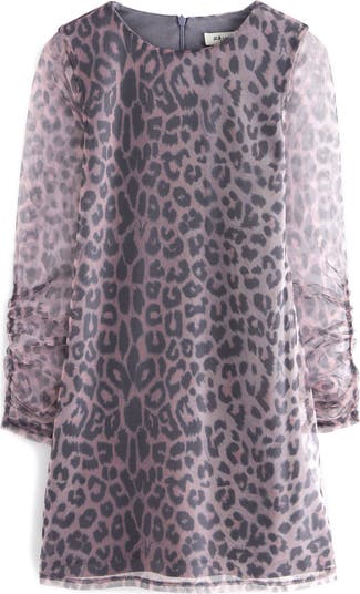 Leopard Print Long Sleeve Mesh Minidress