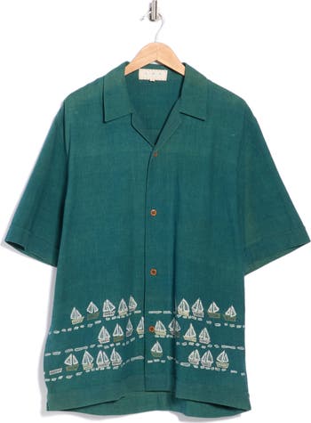 Embroidered sailboats float across this relaxed-fit camp shirt crafted from pure cotton to keep you looking cool on sunny days.