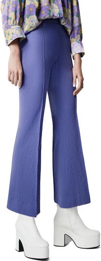 A pebbled texture and neat pintucks define these retro pants done in stretch-kissed cotton fabric.