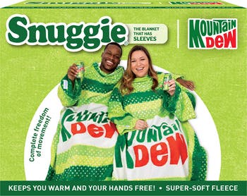Wrap yourself in Baja-or-bust energy with this cozy wearable blanket featuring a bold Mountain Dew design.