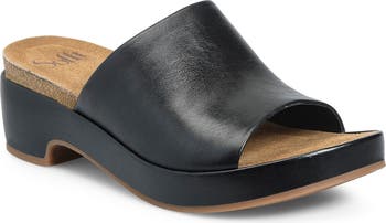 Supple suede lining elevates a cushioned footbed on a comfortable slide sandal rendered in smooth leather and lofted by a modest platform and block heel.