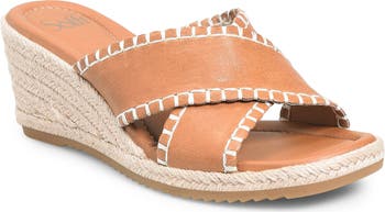 Artisanal blanket stitching trims the supple leather straps on an espadrille-inspired slide sandal lifted by a jute-wrapped platform and integrated wedge heel. A cushioned footbed and durable sawtooth sole offer comfort and stability.