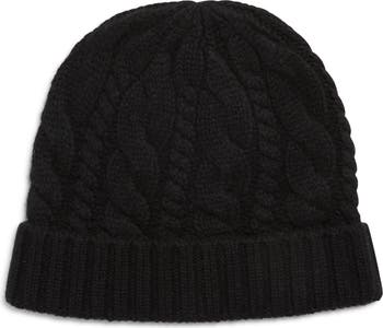 A chunky-cable knit accents this beanie crafted from supersoft cashmere for chic winter style.