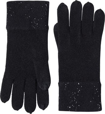 Dainty sequins accent the cuff of gloves that are knit from cashmere for a supersoft feel.