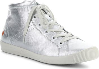 A side zipper offers easy on-and-off access to this mid-top sneaker finished from soft leather in a glossy metallic for a standout finish.