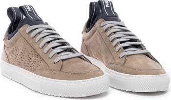 Logo-shaped perforations and grosgrain tabs at the tongue and heel counter refresh a flexible leather sneaker boasting a cushioned footbed and grippy traction sole.
