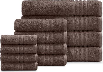 Refresh your bathroom essentials with this 12-piece towel set constructed from soft, absorbent Turkish cotton.