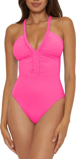 Braided straps bring a hint of texture to this strappy one-piece with a lace-up back detail.
