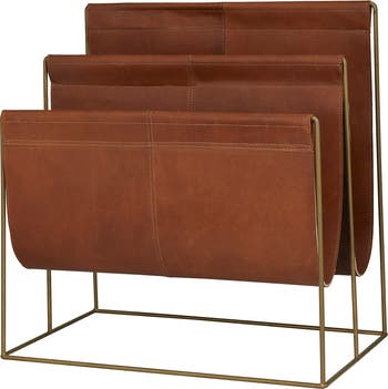 Organize your desk in style with this file rack that flaunts a chic modern design to complement your office or study desk. Keep your books and magazine organize with this chic magazine holder. Sturdy and long lasting construction for a solid display of all your books and magazine. Leather and hair on hide are natural products, and therefore no two will be alike. There may slight variations in pattern, natural blemishes, colors, and overall aesthetic of the product. Made in India. Modern design. For indoor use. Item comes shipped in one carton.