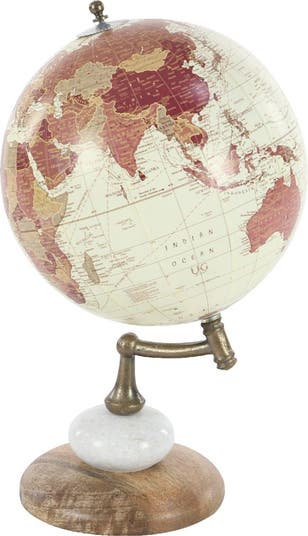 Exactly as shown in the photo. The globe, itself, is nicely done. The base is heavy so the globe does not feel like it will topple over. We have Christmas crèches from various parts of the world. The globe is set among them to symbolize their international origins. After the holidays this piece will go into my spouse’s office.
