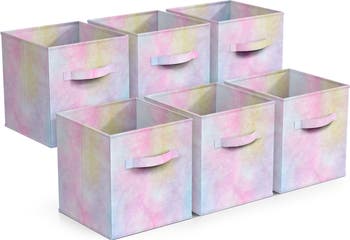 Organize your space and reduce clutter with this set of six storage cube bins that easily collapse and can be folded away.