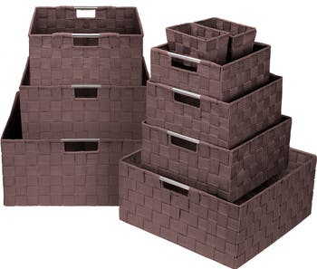 - - 9-piece set - Color: chocolate - Imported Set includes: - 2 Small: 5.75" x 3" x 3" - Medium: 8" x 8" x 3.5" - Large: 9.37" x 9.37" x 4.25" - X-Large: 11" x 11" x 5.25" - XX-Large: 11.75" x 11.75" x 5.75" - XXX-Large: 12.5" x 12.5" x 6" - XXXX-Large: 13.5" x 13.5" x 6.5" - XXXXX-Large: 15" x 15" x 7"