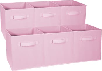 Perfect for organizing and cutting down on clutter, these Collapsible Storage Cubes add style and function to your cube organizer! Fabric drawers easily slide in and pull out of cube shelves thanks to sewn in handles! With a durable, eye-catching vertical stripe pattern, the Collapsible Storage Cubes are a terrific choice to keeping household items tidy! The Collapsible Storage Cubes are also specially designed to fit perfectly with the Storage Cube counterparts -- together they form an unbeatable combination of color, function, and style. Organize and tote everything from toys to laundry inside sturdy cubes with bright color patterns and strong handles. From wrangling household items to collecting unruly toys, camouflage and conceal some of the most common household eyesores. Transform a closet or laundry room with cleverly organized baskets perfect for storing linens, clothes, seasonal items, holiday ornaments, and much more. If gadgets, bags, and shoes are constantly underfoot in your home, slide them in bins underneath a bench in the mudroom or stack them in your own unique configuration. In the kid`s room, create a FUN-ctional play area where Legos, books, and dolls have a cozy cube to call home. Bins are lightweight, sturdy, and easy for kids to place on the floor to grab their favorite toy. The possibilities are endless! Collapsible design assembles in seconds and folds flat for easy storage. Made of nonwoven polypropylene and cardboard with colorful lightweight fabric. Bins complement cube storage organizer shelves and provide adequate space to sort your clutter. Side handles allow for easy transportation. Soften storage with lightweight bins that make a practical addition to any room.