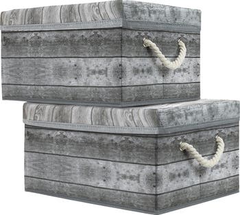 Created with rustic style, the Sorbus Storage Box Set offers a charming way to organize your space. It features a wood inspired print, foldable frame, lid closure, and rope carry handles. Store supplies, magazines, and blankets or use as a memory box for photos, greeting cards, and keepsakes. You'll simply love pulling back the lid and rummaging through all your cherished moments. For decorative kids storage, the charming rustic pattern makes this bin set an adorable accent to any woodland style nursery or playroom filled with baby products, infant clothes, and toys. The lid closure conceals clutter and allows each bin to stack to maximize space. Simply place these collapsible basket bins on shelves, tabletops, floors, and cube organizers for display. The portable carry handles make each bin easy to lift and tote around the home or office. To use as open concept storage, detach the lid closure using the hook-and-loop tab and when not in use, collapse flat for easy storage.