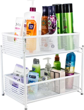 If clutter makes you crazy, add style, efficiency, and productivity with organizer baskets! Whether you're storing special seasonings, everyday toiletries, or an overload of office supplies, the Sorbus 2 Tier Mesh Organizer Basket maximizes your space so you can focus on what matters. The attractive 2-level design makes it perfect for the cabinet, countertop, pantry, vanity, workspace, and more. Create extra storage space virtually anywhere and bring items front and center with pull out sliding drawers. Are you tired of digging through cabinet clutter just to find one simple item? For kitchen organization that fits your every need, turn your tight spaced pantry into an organized extensive spice collection. Create storage in lower cabinets for canned goods and baking supplies or under the sink for cleaning products and miscellaneous items. Beautifully organize coffee, tea, and other add-ins on the countertop next to the Keurig machine for a mini cafe! For a fully-functional bathroom, use our 2-drawer solution to store toiletries under the bathroom vanity. Keep bottles, lotion, hairspray, make-up, toothpaste, etc. well within reach. Enhance your office with a well-designed workspace so you can quickly find paper clips, rubber bands, staplers, and much more to meet that impossible project deadline. Experience a functional design concept, stacked to suit your space confinements! - Color: white - Two tier design - Constructed of durable steel mesh to prevent small items from falling through - Rubber feet protectors - Drawers smoothly glide in and out for easy access with built in handles for easy transport - 14.75" L x 9" W x 13" H - Imported Orders cannot be shipped to Canada, Puerto Rico, APO, FPO or P.O. Boxes.