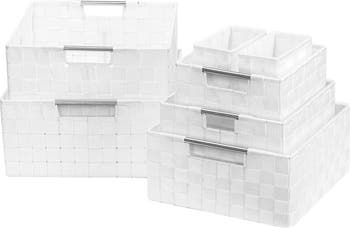 - - 7-piece set - Color: White - Imported Set includes: - 2 Small: 5.75" x 3" x 3" - Medium: 8" x 8" x 3.5" - Large: 9.62" x 9.62" x 4.25" - X-Large: 11" x 11" x 5.25" - XX-Large: 11.75" x 11.75" x 5.75" - XXX-Large: 12.5" x 12.5" x 6"
