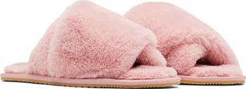 Slip into the plush comfort of these fuzzy faux-fur slide slippers grounded by a sturdy rubber sole that makes them perfect for quick errands.