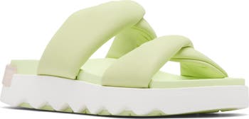 Twisted leather straps add an elegant flourish to a sporty-chic slide sandal that floats on a lightweight scalloped sole built for grab-and-go comfort.