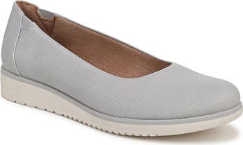 A cushioned footbed enhanced with Contour+ Comfort technology delivers allday comfort to this polished flat lifted by a minimal wedge heel.