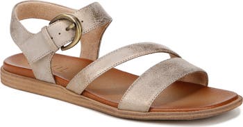 A well-cushioned footbed puts lasting comfort in every step of an all-season sandal finished with a gleaming buckle.