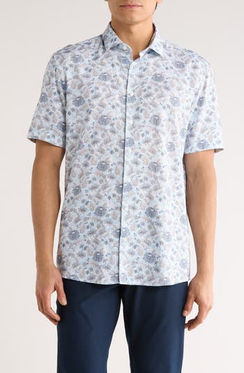 Stay cool and comfortable throughout your day in this short-sleeve sport shirt cut from breathable fabric enriched with linen.