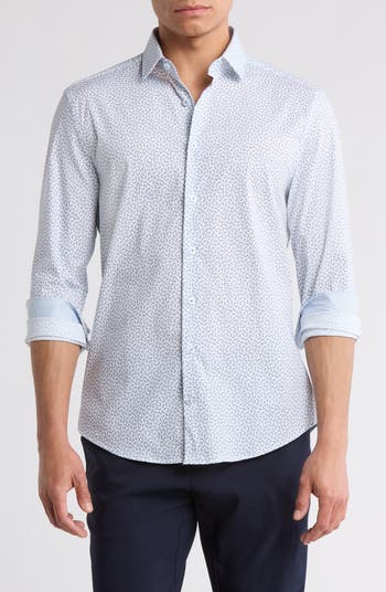Crisp cotton fabric enhanced with a hint of comfortable stretch brings easy comfort to a button-up shirt framed by polished long sleeves.