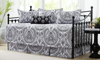 Give your room a comfortable and cozy look with our Infinity 6-Piece Daybed Set. Complete with a quilted daybed cover, three decorative sham covers, one-bed skirt, and a 12 x 18 neck pillow. Features a classic medallion design on a luxe, ultra-soft, double brushed material and exquisite embroidered detail.