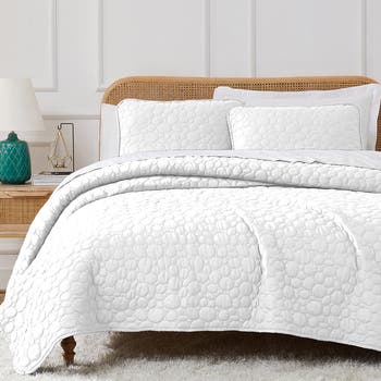 Refresh your bedroom or guest room with this pebble-embroidered quilt set constructed from soft microfiber.