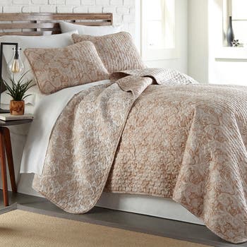 Light-weight, over-sized, versatile quilt set. Use it on its own or as a layer. Made with High Quality 110 GSM Microfiber Fabric, Beautiful Embroidered Pattern, Set includes: 1 Quilt and 2 Pillow Shams (1 for twin). Easy Care, Machine Washable, shrinkage free and wrinkle resistant.