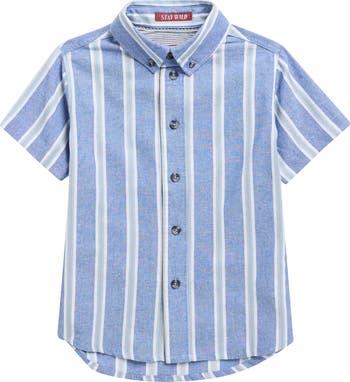 From school to a special occasion, this striped button-up shirt is ready keep them comfortable no matter what the day brings.