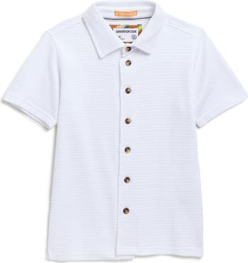 Your kiddo will go from school studies to playdates on the weekends in this short-sleeve button-up shirt cut from waffle-textured cotton.