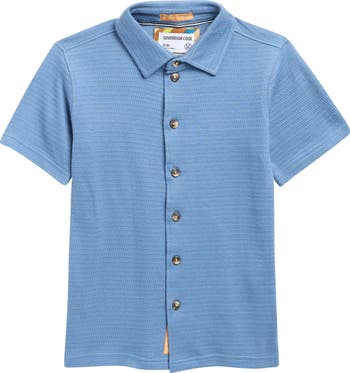 Your kiddo will go from school studies to playdates on the weekends in this short-sleeve button-up shirt cut from waffle-textured cotton.