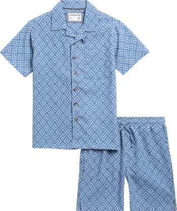 Effortlessly cool and coordinated, this camp shirt and shorts set features a textured geometric weave for a look made for fun in the sun.