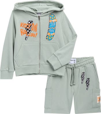 Perfect for lounging around or heading to the skate park, this kid-approved set features a full-zip hoodie paired with drawstring shorts.