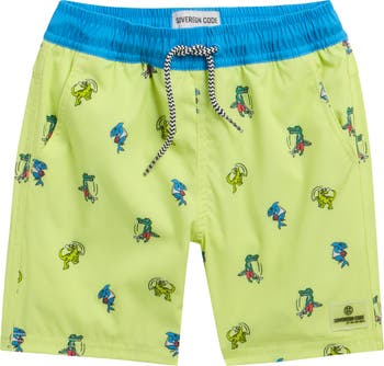 Silly shark-themed graphics lend kid-approved whimsy to swim trunks built with a trio of pockets so they can store all their beach-day finds.