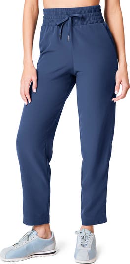 Take on the weekend in sporty-chic tapered pants featuring a smoothing, smocked waistband and four-way-stretch fabric that wicks moisture and resists static.