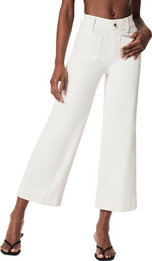 A pull-on waist makes for an all-day-comfy fit in these stretchy, curve-hugging wide-leg jeans featuring targeted tummy-shaping technology. The fitted high waist is designed without a zipper for a smooth look, while the back pockets are strategically placed to lift and shape your booty.