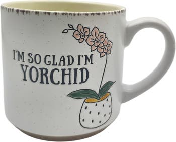 Give Mom a sweet surpise with this stoneware mug featuring a lovely orchid design.
