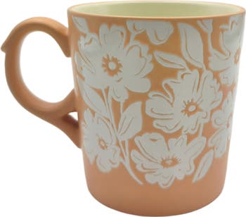 Sip your favorite tea, coffee or bone broth from this charming stoneware mug adorned with a floral design.