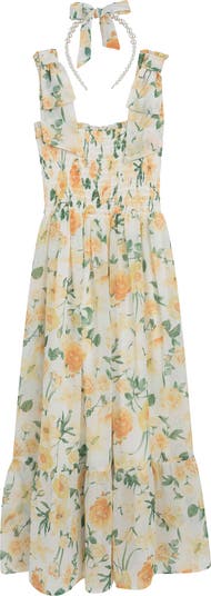 Their next sunny day calls for this adorable smocked maxi dress covered in a charming floral print and complete with a coordinating headband.
