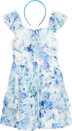 Your little one will feel their finest in this charming watercolor-print dress with lace-up detail and paired with a headband for a polished finish.