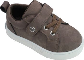 A hook-and-loop strap adjusts to growing feet with this casual sneaker fashioned in an easygoing low profile.