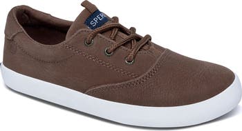 Give your kid sporty style with this textured leather sneaker featuring comfortable memory foam cushioning and a wave-textured grip sole.