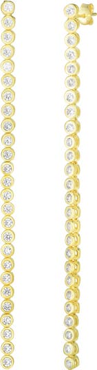 Bezel-set cubic zirconia sparkle along glamorous linear drop earrings crafted from 14-karat gold-plated sterling silver.
