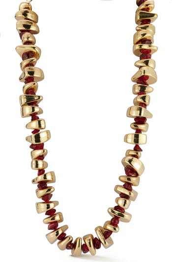 Glossy metallic beads and faux stones bring striking shine to this textural collar necklace that's perfect to layer or show off solo.
