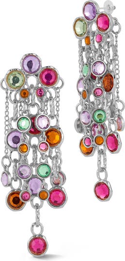 Bezel-set rainbow crystals catch the light from every angle on these cascading chain drop earring that bring glamorous shine to your night-out looks.
