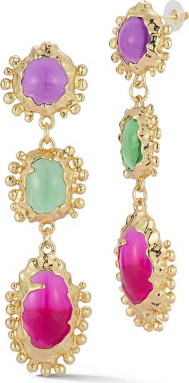 Colorful CZ adds vibrant sparkle to these statement-making drop earrings that add a dose of drama to your look.